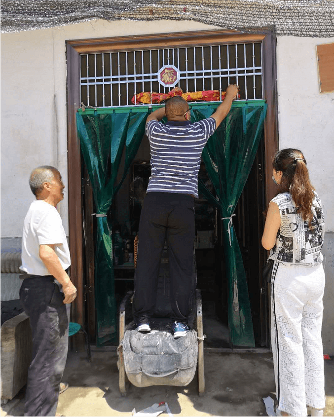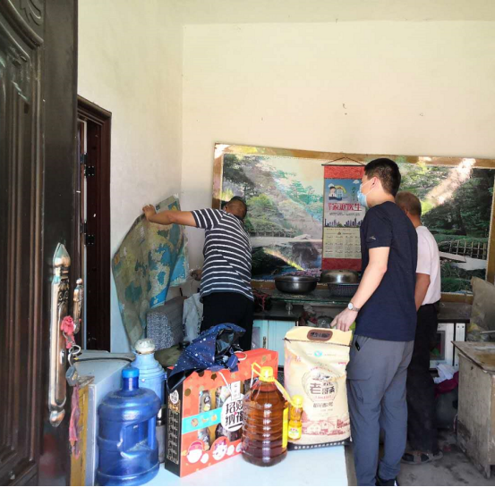 西安水建集團(tuán)副總經(jīng)理吳振江為幫扶對象擦拭門上的灰土